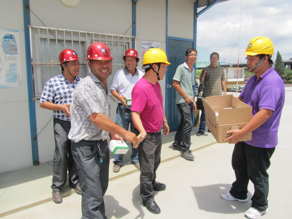 7月27日,集團(tuán)公司副總經(jīng)理、寧波管理中心總經(jīng)理蔣國(guó)星帶著管理中心人員,帶著慰問(wèn)品,冒著酷暑赴管理中心所屬各在建項(xiàng)目工地,慰問(wèn)奮戰(zhàn)在施工一線的建筑工人,向各項(xiàng)目部送上了防暑用品,并向全體施工、管理人員表達(dá)了誠(chéng)摯問(wèn)候。同時(shí)蔣總要求各項(xiàng)目部合理調(diào)整高溫季節(jié)施工作業(yè)時(shí)間,做好防暑降溫和飲食衛(wèi)生工作,確保施工一線人員人身安全和健康。