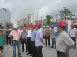 8月7日上午,市委常委、市紀(jì)委書記暨軍民一行在區(qū)委書記彭朱剛,區(qū)委副書記、區(qū)長吳勝武等區(qū)領(lǐng)導(dǎo)陪同下,檢查了我雙楊村安置房工地的防臺工作,并聽取了項目部防臺防汛工作的匯報。暨書記高度肯定了我項目部的防臺防汛工作,并強(qiáng)調(diào)要高度統(tǒng)一思想,嚴(yán)格落實應(yīng)急搶險隊伍、應(yīng)急物資、人員值班等各項制度,做好中心城區(qū)建筑工棚內(nèi)、危險房內(nèi)及拆遷地塊居民的安全轉(zhuǎn)移工作。