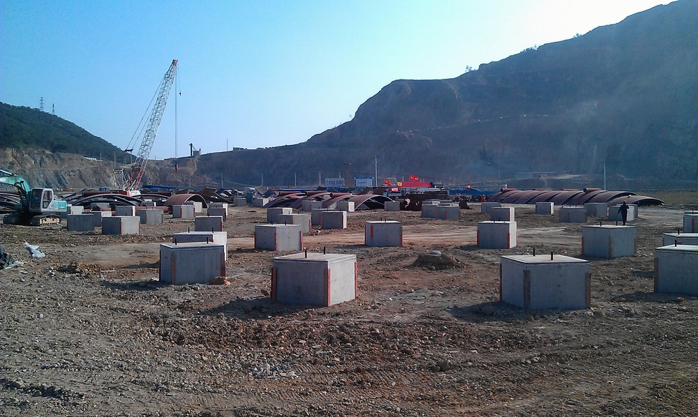 項目部承建的一階段工程位于寧波北侖區(qū)青峙開發(fā)區(qū)內,共有丙烯罐組12個球罐基礎與混合碳四罐組10個球罐基礎。其中丙烯罐組每個罐基礎上均勻分布10個短柱,混合碳四罐組每個罐基礎12個短柱。每只短柱上都預埋2個M48地腳螺栓。