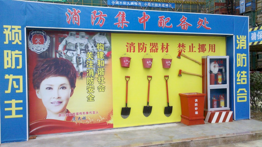 主要施工部位、作業(yè)點(diǎn)和危險區(qū)域和主要通道口都有針對性的懸掛醒目的安全警示牌,在主要施工道路旁設(shè)置消防組合臺。