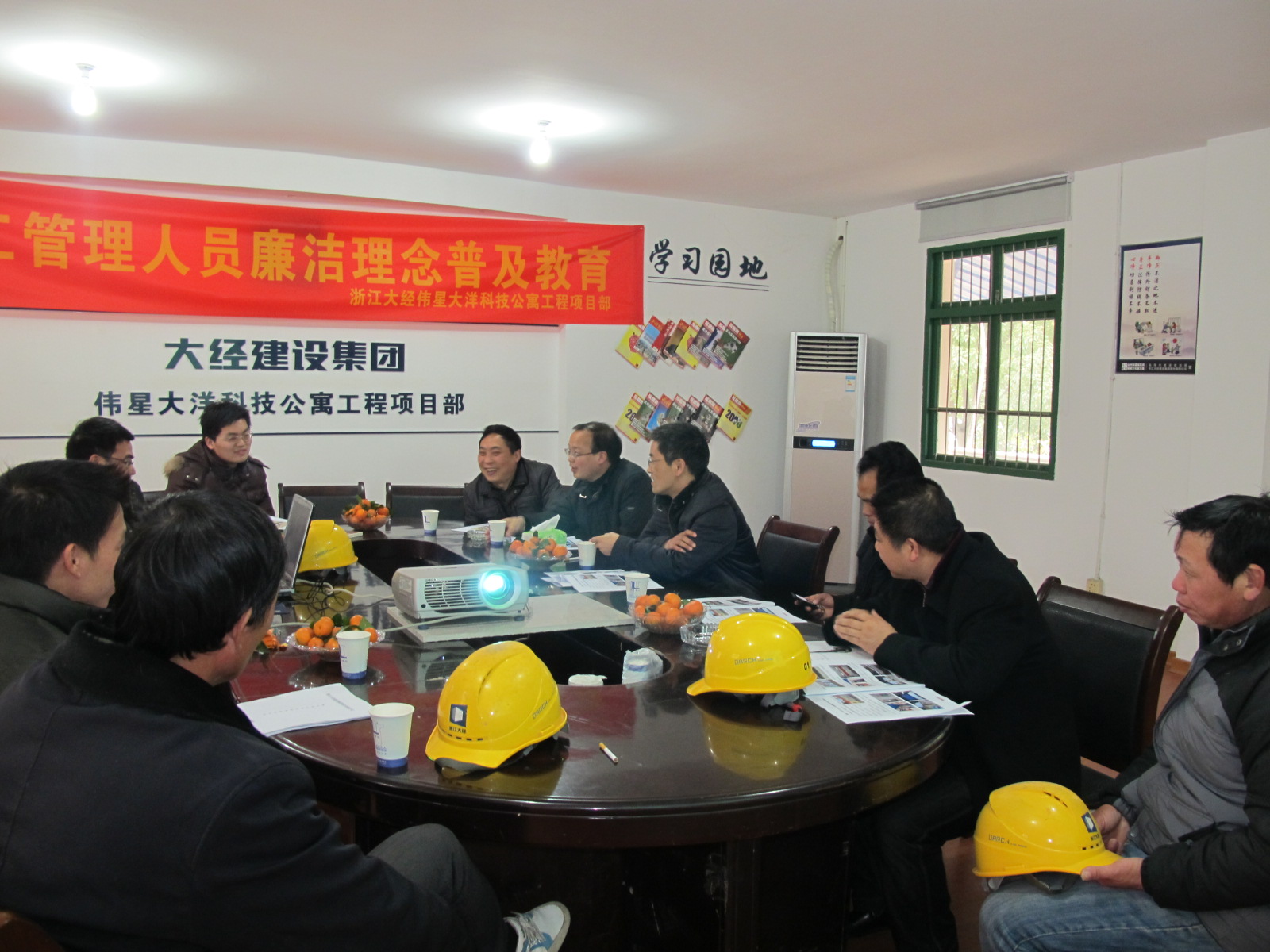 2011年1月18日,臺州市建設(shè)規(guī)劃局辦公室副主任傅定軍、臨海市建設(shè)規(guī)劃局主任許修建等一行六人到我集團(tuán)公司施工的臨海市大洋科技公寓工程進(jìn)行廉政建設(shè)檢查指導(dǎo),檢查組領(lǐng)導(dǎo)看到該工程施工圍墻上美觀的廉潔文化宣傳圖片、圖文并茂的宣傳窗、內(nèi)容豐富的廉潔文化專欄,設(shè)施齊全的廉潔文化活動(dòng)室和各種各樣的廉政書籍、影像資料時(shí),給予了高度評價(jià),認(rèn)為我集團(tuán)公司已經(jīng)認(rèn)識到廉政文化建設(shè)的重要性,并主動(dòng)結(jié)合安全生產(chǎn)等活動(dòng)開展廉政宣傳教育等活動(dòng),軟硬件結(jié)合,內(nèi)外并存,實(shí)施有廣度、有深度。