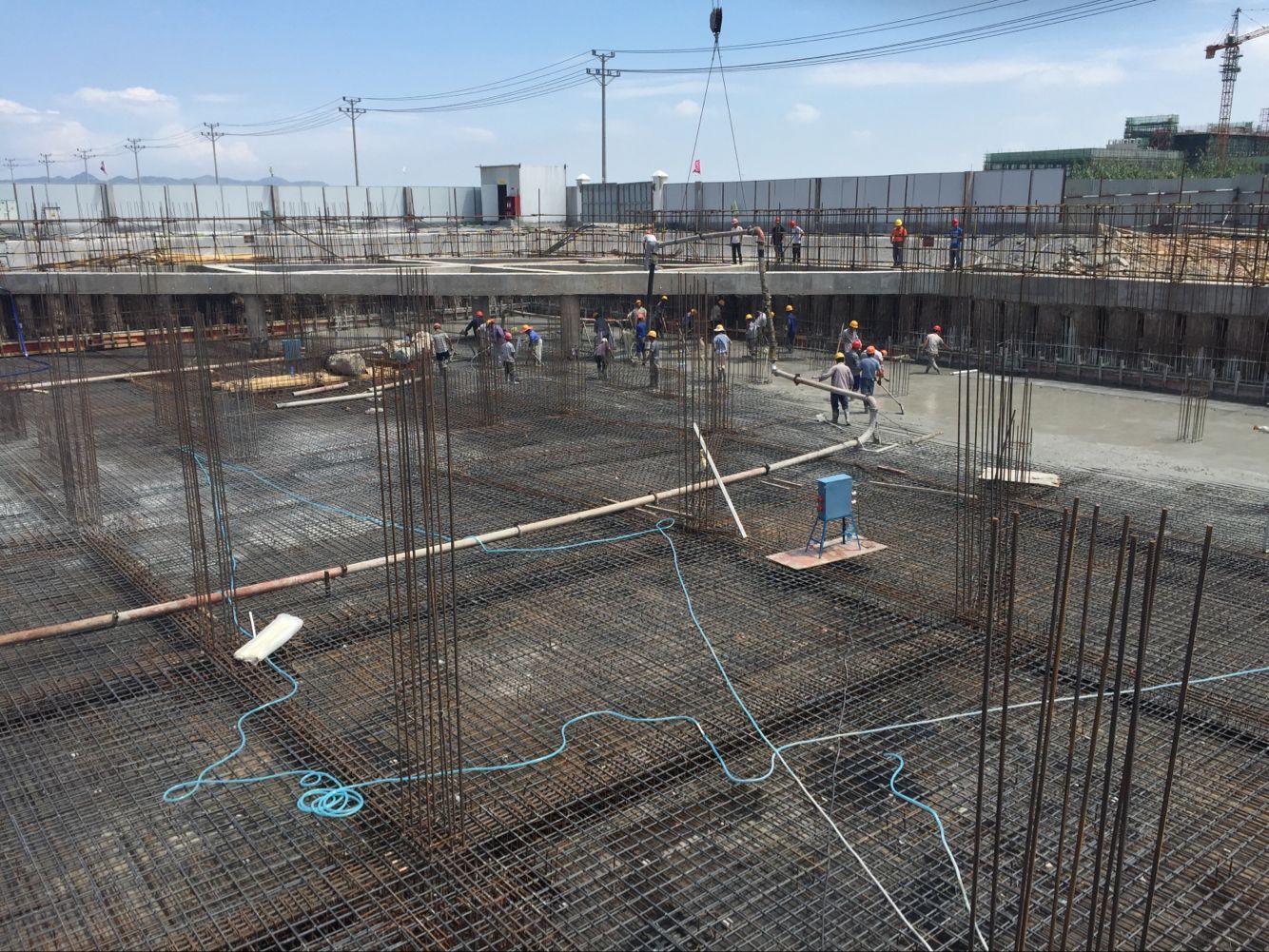 8月22日早晨五點(diǎn)三十分,天微微亮,混凝土泵車(chē)從頭門(mén)港區(qū)永太紫金港人才公寓項(xiàng)目部西大門(mén)駛進(jìn)了工地。在收料人員的精心組織下,一輛輛混凝土運(yùn)輸車(chē)也依次有序的進(jìn)入了工地,開(kāi)始了永太紫金港人才公寓項(xiàng)目1#區(qū)塊即(5#樓)地下室第一塊底板大體積混凝土的澆搗作業(yè)。