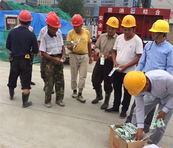 進(jìn)入盛夏季節(jié),氣溫升高,這給正常施工帶來(lái)了諸多影響。為切實(shí)做好夏季防暑降溫工作,保障施工現(xiàn)場(chǎng)一線人員的身體健康,6月,集團(tuán)公司向項(xiàng)目部一線人員發(fā)放了人丹、藿香正氣水、十滴水、風(fēng)油精等防暑降溫藥品,有力促進(jìn)了現(xiàn)場(chǎng)施工安全高效推進(jìn),激發(fā)了作業(yè)人員的愛(ài)崗敬業(yè)熱情。